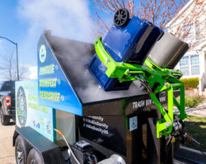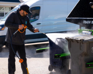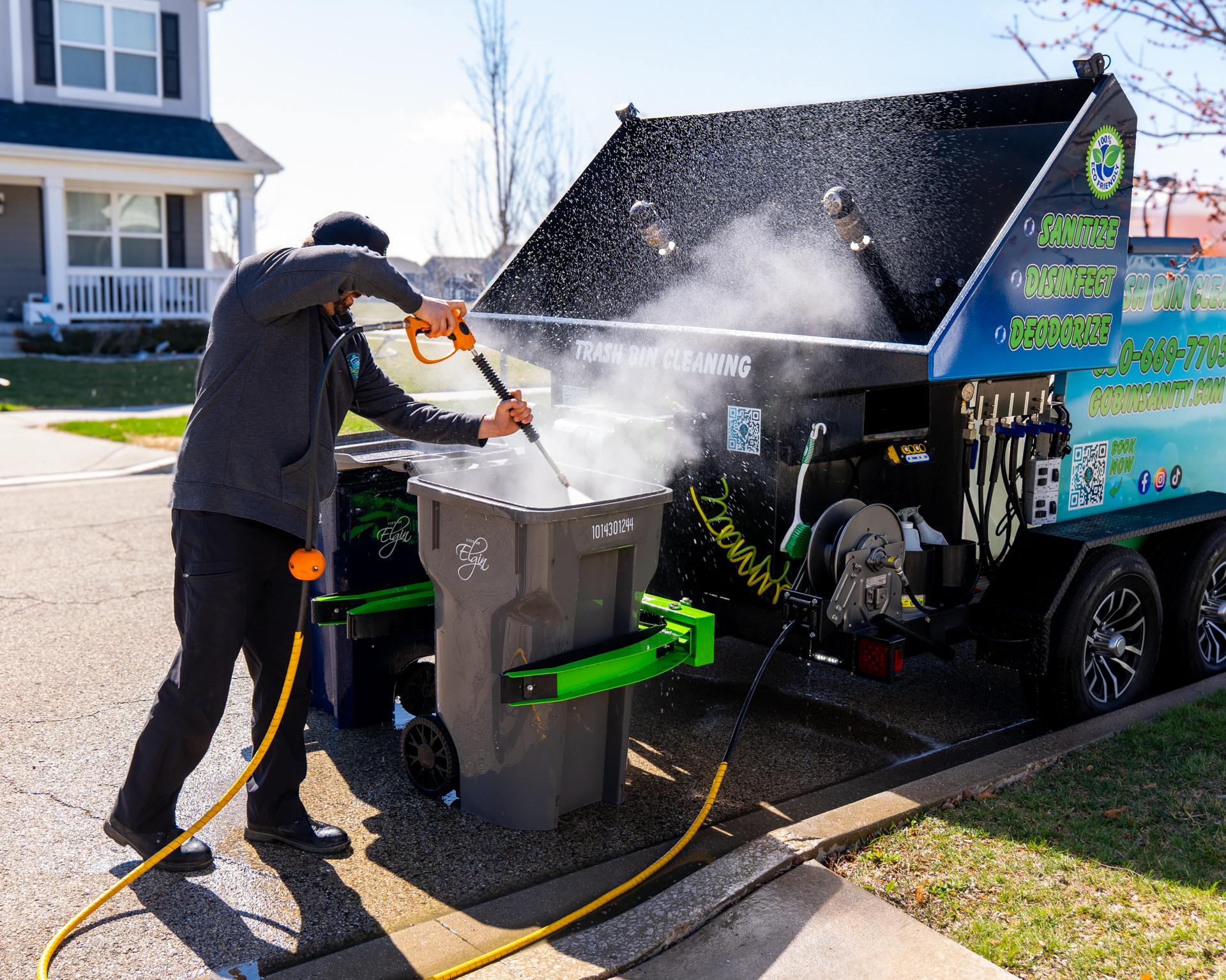 Binsanity uses high-powered equipment, steaming hot water, and eco-friendly cleaning products to sanitize bins inside and out—removing grime, killing germs, and eliminating odors without harsh chemicals. And because the planet matters too, we collect every drop of wastewater and dispose of it safely, never letting it pollute local waterways.